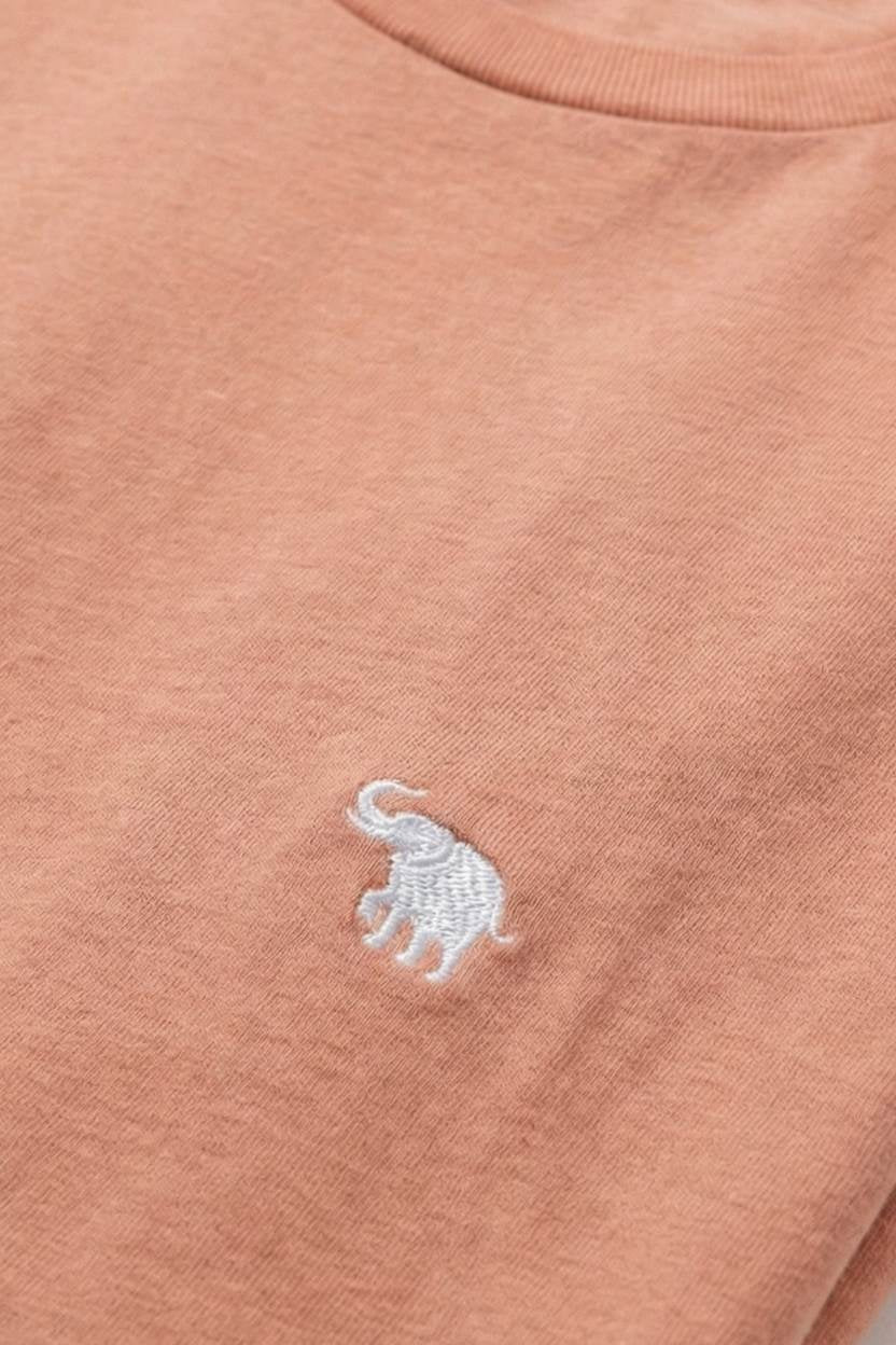 Channel tropical vibes with this coral t-shirt featuring a vibrant elephant embroidery. Made in Portugal from premium organic cotton for soft, everyday comfort. A standout piece that brings color and joy to your style.