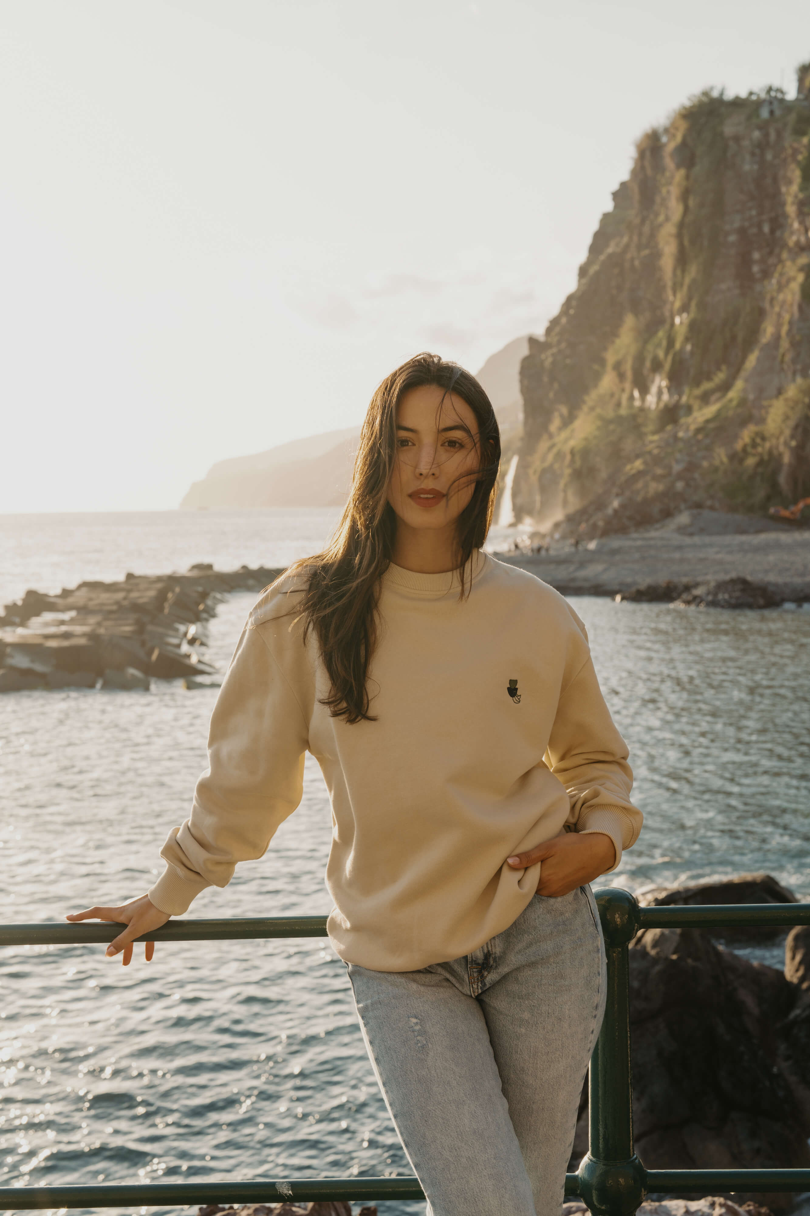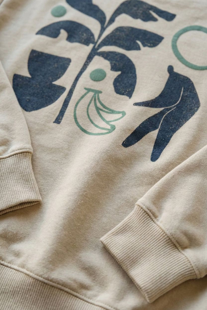 Inspired by the connection with nature and the hard work of island farmers, this crewneck sweatshirt in Sandstone Beige honors the land and the sustenance it provides. Crafted from 300gsm premium organic cotton, it features a brushed interior for warmth and comfort, and textured puff print details that echo the textures of the earth.