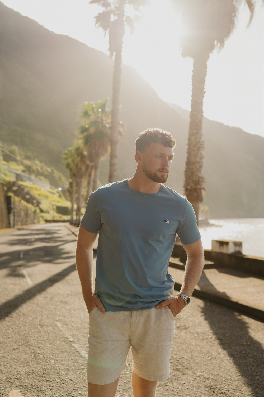Inspired by the misty landscapes of Fanal, where ancient trees are shrouded in a veil of fog. Crafted from premium organic cotton, this t-shirt in Foggy Blue evokes mystery and elegance, elevated with textured puff print details.