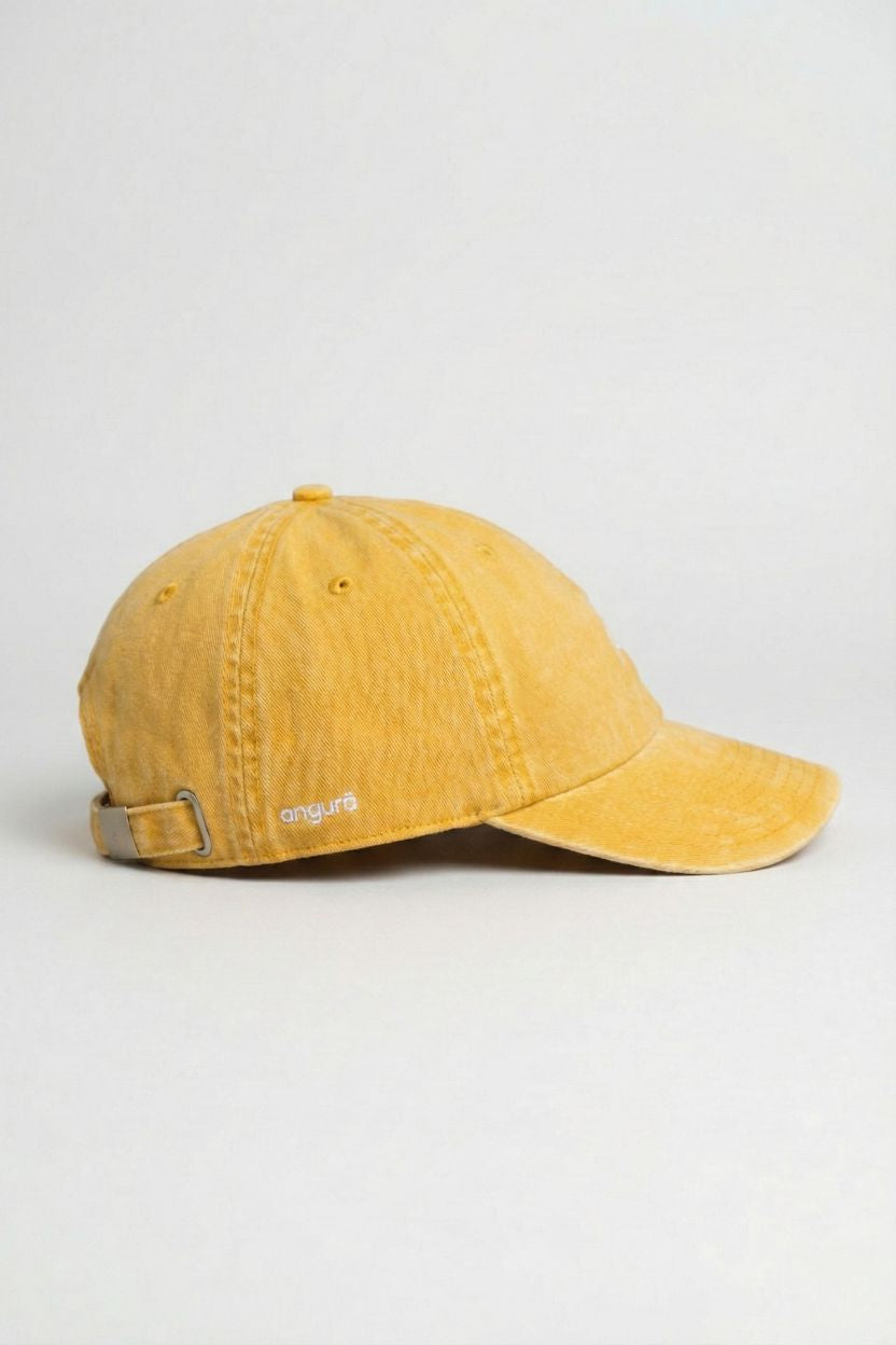 Add a playful pop to your outfit with this mustard washed cap featuring a vibrant toucan embroidery. Inspired by tropical vibes and colorful feathers. Casual, stylish, and full of life.